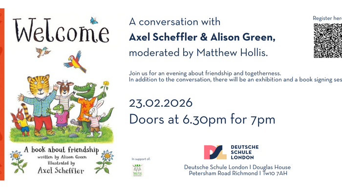 Ein Abend mit Axel Scheffler und Alison Green, moderiert von Matthew Hollis zu ihrem Buch "Welcome - a book about friendship"