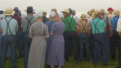 Symbolbild (Amyd from Pixabay): Anders als bei dieser Gemeindeversammlung der Amishen sind bei uns Kopfbedeckungen nicht zwingend erforderlich. Dafür gibt es Sitzgelegenheiten….