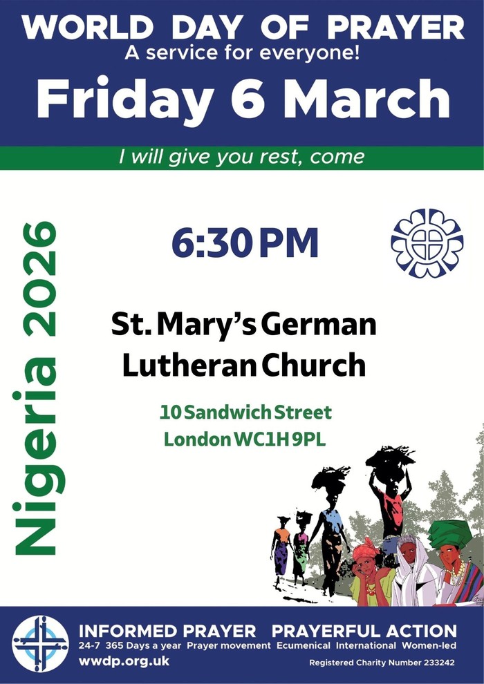 Herzliche Einladung zum Weltgebetstag gemeinsam mit dem CLC in St. Marien, 10 Sandwich Street, WC1H 9PL